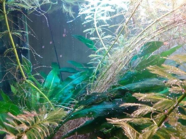 Nach dem wasserwechsel bilden sich unzählige wasserbläschen am glas und an den pflanzen
