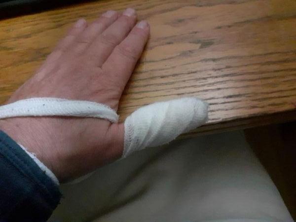 Ganz ungläubig hab ich dann auf den armen daumen geschaut... dann kam der schmerz und das pochen