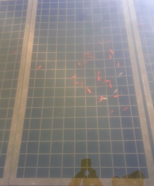 Das gitter ist super -- weil wenn sie taaatsächlich noch reinfallen würde, hätte ich, bevor ich ihr raushelfe, zeit, von ihr, in der goldfischlacke, noch ein foto zu machen