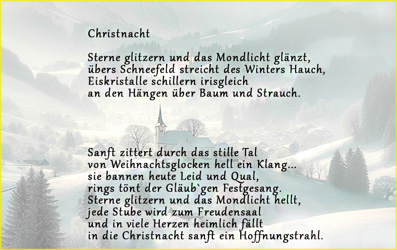 Veröffentlicht am 23. Dezember 1920 in der *Württemberger Zeitung* Das Gedicht wurde vertont und als Lied gesungen. Der Link zum Lied befindet sich unten in meinem Kommentar.