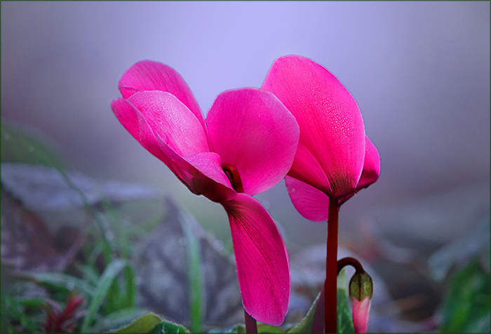 Die Knospen der Alpenveilchen erinnern mit ihrem Bogen zum langen Stiel hin