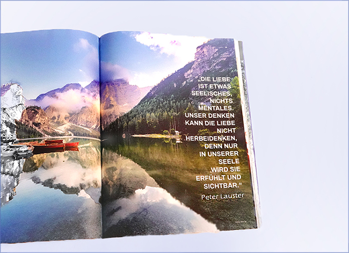 Zwei Seiten mit schöner Fotoillustration und Zitat