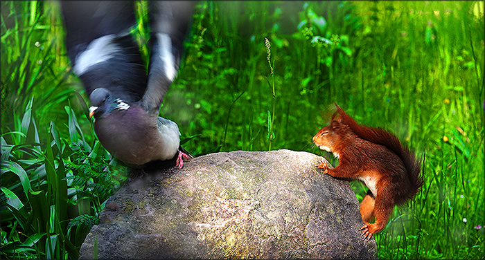und ein Eichhörnchen, entsprechend der Situation, ohne freudiges Gesicht.