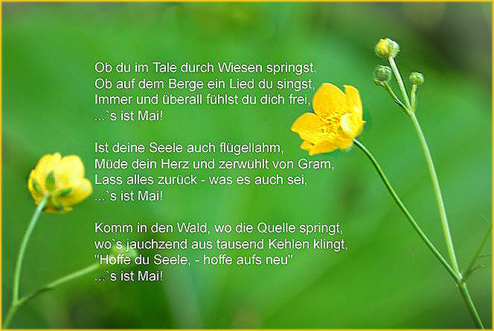 Lieber Peter ,die Liebe zur Natur ,das Erwachen im Mai der Natur ,die Freude darüber und Wertschätzung kommt sehr feinfühlig und sensitiv bei mir an ,wunderschön ,ich kann sehr gut nachempfinden ,was dein Großvater damit ausdrücken wollte und empfunden hat ,sei lieb gegrüßt und Danke für dein Dasein ,herzlichst Sylke