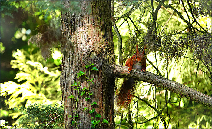Die Eichhörnchen springen auch schon einmal auf Dächer oder größere Steine.