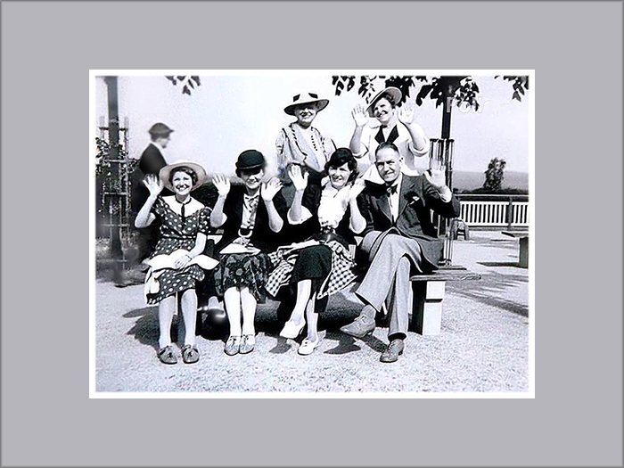 Meine Mutter (im Alter von 20 Jahren, noch nicht verheiratet) sitzt neben ihrem Bruder (der als wehrpflichtiger Soldat 1944 in Russland gefallen ist) und neben ihren beiden Schwestern.