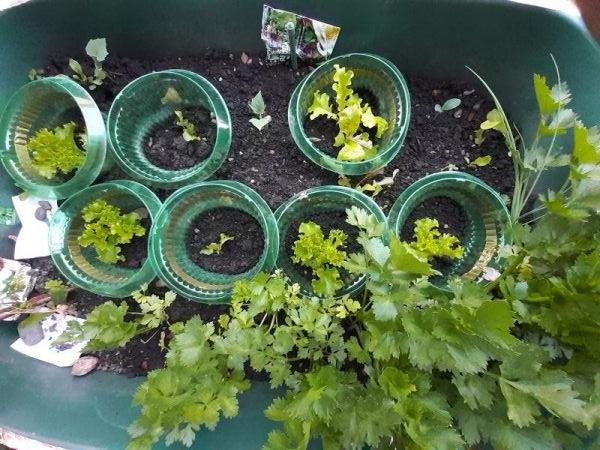 Die zwei von den schnecken angefressenen pflanzl - werden es vermutlich auch schaffen - salat zu werden