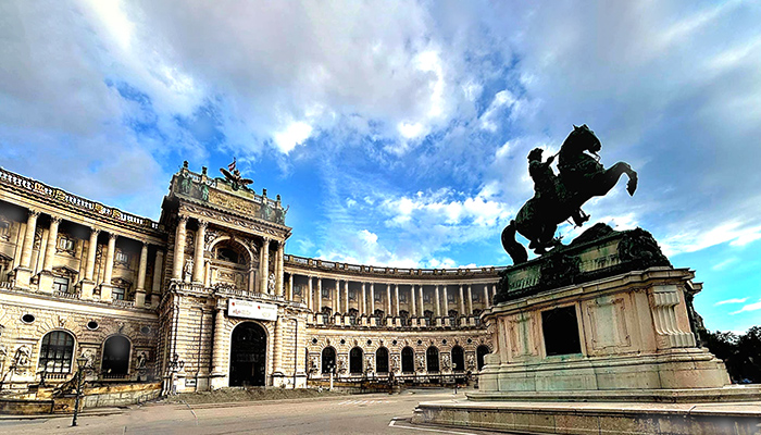 Wiener Hofburg, Residenz der Habsburger am Wiener Heldenplatz mit Prinz-Eugen-Denkmal.