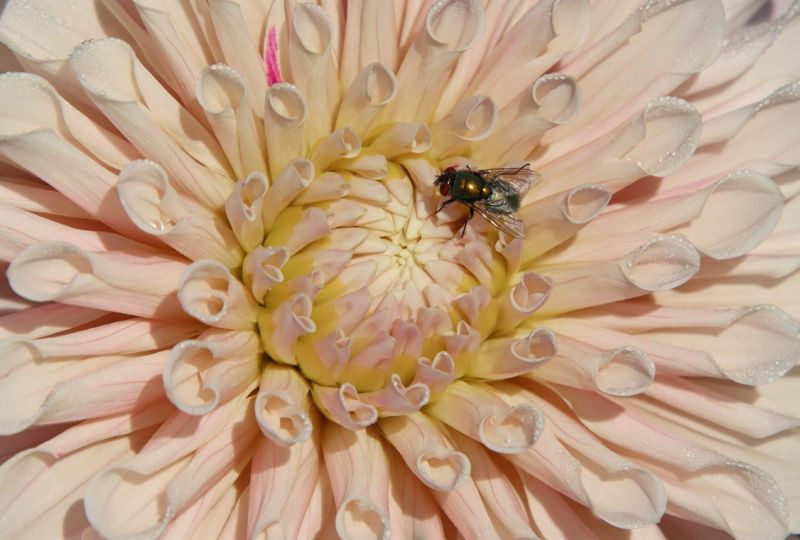 Zu deinem schönen Bild hier mit der Fliege auf der Dahlie - was ich von einem solch kleinen Insekt, bei mir die Stubenfliege, durch Beobachtung, an Erkenntnis über das Leben allgemein gewinnen konnte, steht in keinem Lehrbuch, ebenfalls über die noch kleineren, so gefürchteten Fruchtfliegen - vielen Dank, wenn es mir gelingt, Fotos auf das iPad zu übertragen, werde ich versuchen, diese hier hochzuladen.
