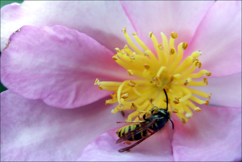 Eine der letzten Wespen in diesem Jahr, heute morgen auf einer Kamelienblüte gesehen