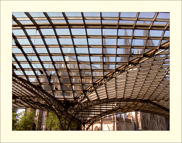Dann nach links oben geschaut und du siehst durch die riesige Glas-Stahlkonstruktion hindurch den Kölner Dom und den blauen Himmel. Es erscheint unwirklich zu sein, wie aus einem Traum, und ist dennoch ganz real.