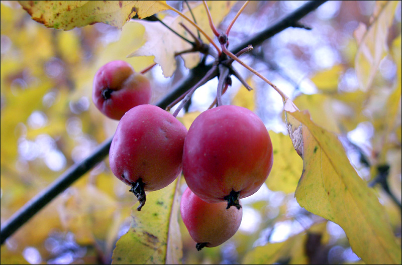 Heute morgen an einem Baum. Äpfel sind es nicht. Sie waren nur 2 cm groß.