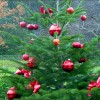 Schön, wie diese leuchtend roten Kugeln und Äpfel sich von dem satten Grün abheben.