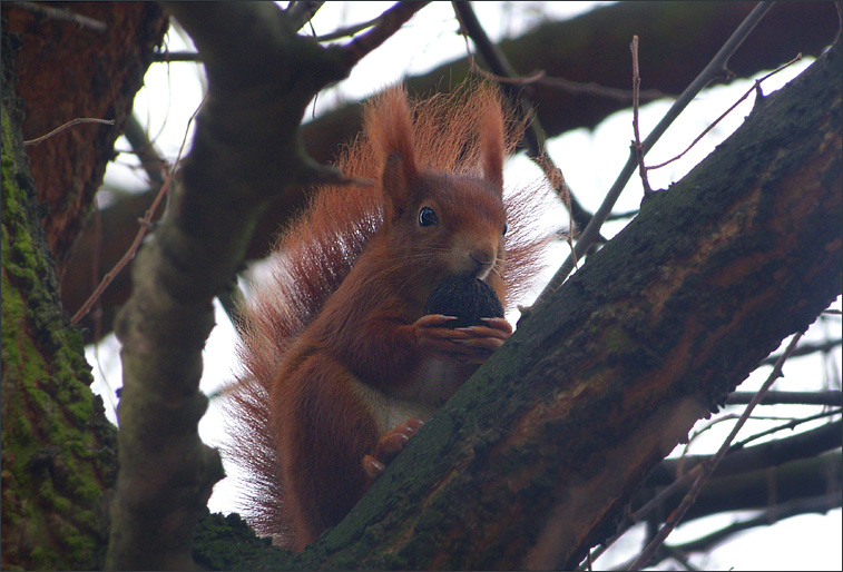 Für den Tag brauchte es nicht zu hungern. Ein wunderschönes Foto vom Eichhörnchen.