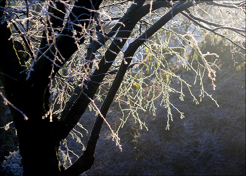 Wunderschön diese lichtdurchfluteten Rauhreifzweige ...