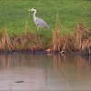 Er wanderte um den zugefrorenen See auf Nahrungsuche. Am Teichuferrand kann er nicht im Wasser fischen, weil der See gefroren ist