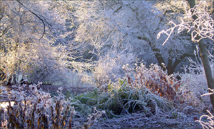 Ich finde dieses Bild ganz besonders schön, das Spiel mit Licht und Schatten und der Sonne auf den Rauhreifzweigen. Die Natur sieht aus wie verzaubert...