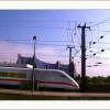 Ein Zug verlässt den Kölner Hauptbahnhof in Richtung der Brücke über den Rhein.