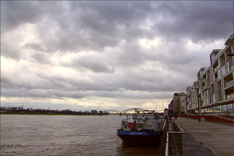 Was für ein großer, breiter Fluss der Rhein ist. Und die Wolken auf dem Foto wirken so nah und tief.