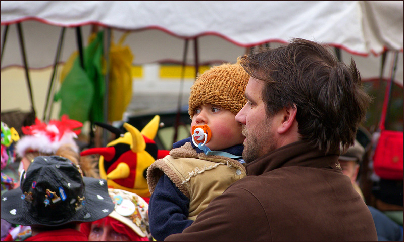 Baby mit Karnvals-Schnuller, sieht ja süß aus.
