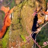 Heute morgen nach Sonnenaufgang an einem Baumstamm. Man sieht auch schon die ersten Blütenknospen