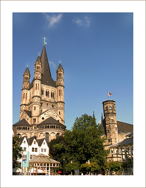 Diese Kirche, am Rhein stehend, ist das Wahrzeichen der Kölner Altstadt.