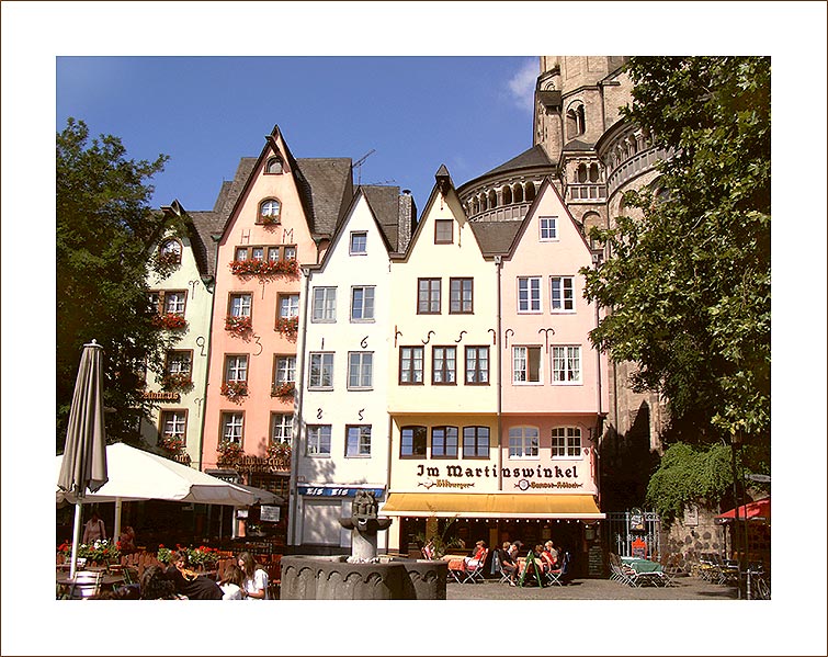 Die Häuser mit den Restaurants bei der Kirche St. Martin.