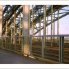 Die Eisenbahnbrücke zum Kölner Hauptbahnhof über den Rhein hat seitlich auch einen Gehweg für Fußgänger und Radfahrer.