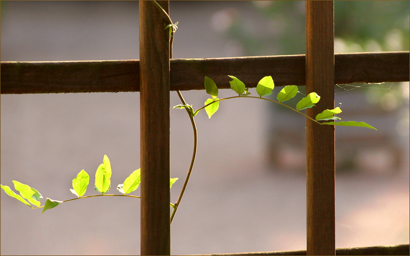 Der Zaun bietet den schönfarbigen Blättern halt.