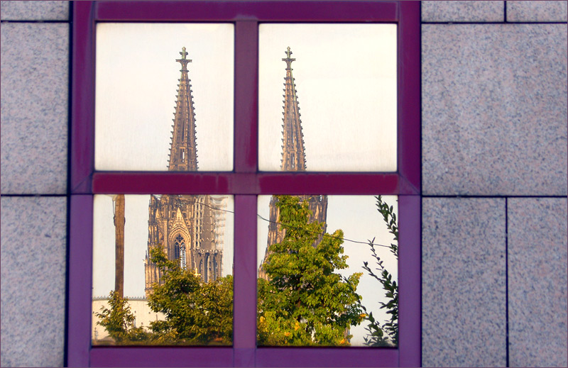 Der Dom gespiegelt in einer Fensterscheibe, also keine Fotomontage