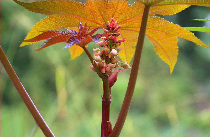 Rizinus hat wunderschöne Blätter, aber die Früchte sehen auch schön aus.