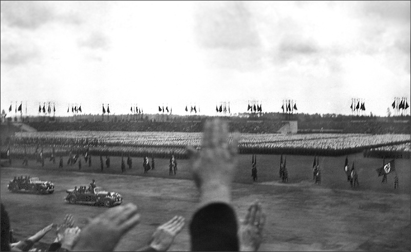Das Foto wurde bei dem Serverabsturz im Juli gelöscht, deshalb füge ich es nun wieder in das Album historischer Fotos ein, weil es eine seltene Amateuraufnahme ist die ich auf dem Flohmarkt gefunden habe. Es zeigt den sogenannten `Reichsparteitag des Sieges` der vom 30. August – 3. September 1933 in Nürnberg stattfand. Dieser Titel nimmt Bezug auf die Machtergreifung Hitlers und den Sieg über die Weimarer Republik. Die Regisseurin Leni Riefenstahl war hier schon mit dabei und sie machte damals den Kinofilm *Sieg des Glaubens*, er war eine Kompilation aus Wochenschauaufnahmen, nachträglich im Studio gedrehten Einstellungen und Außenaufnahmen, die ihr viele Kameramänner ins Studio geliefert hatten.