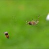 Eine Hummel ist eingesponnen, nach einer kleinen Fliege greift sie gerade
