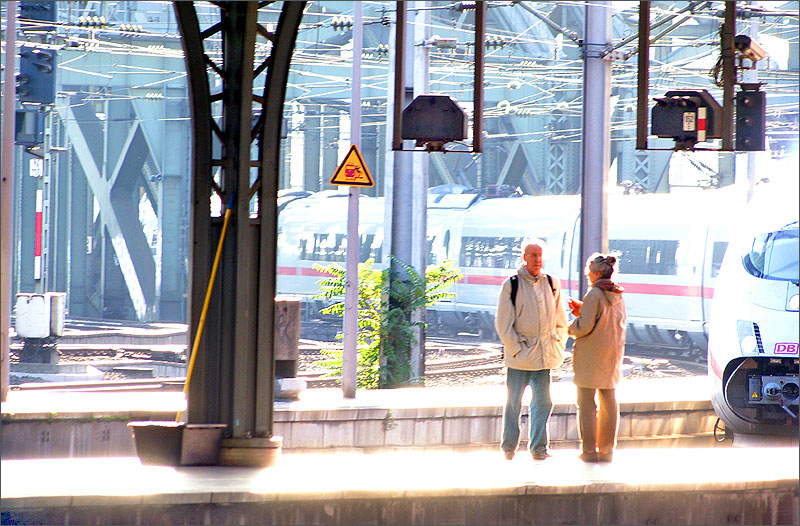 Ein ICE von der Hohenzollernbrücke kommend bei der Einfahrt zum Hbf
