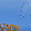 Eine Gruppe im Flug gesehen. Sie sind übrigens keine Zugvögel, denn sie überwintern in Köln.