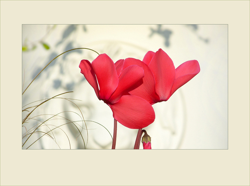 Ein Passepartout macht das Bild erst vollkommen, sind in der Anschaffung aber teuer. Am Computer kein Problem. Die Alpenveilchen sehen sehr schön aus.