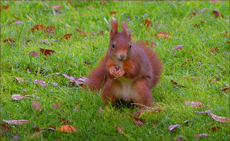 Zu Eichhörnchen gehören auch Nüsse. Ich könnte mir ein Eichhörnchen mit einem Vogel als Speise gar nicht vorstellen, aber der Hunger treibt es oft rein.