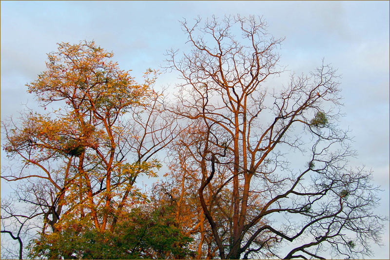 Schöne orange Bäume, angestrahlt von der Sonne.
