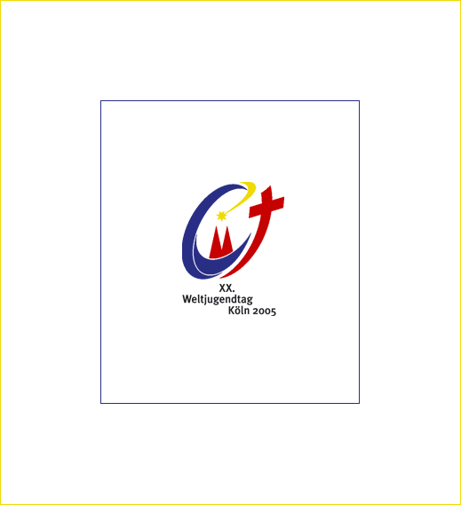 Das ist das *Logo* des Weltjugendtages das in Köln derzeit überall zu sehen ist, auch auf den Rucksäcken vieler Pilger.