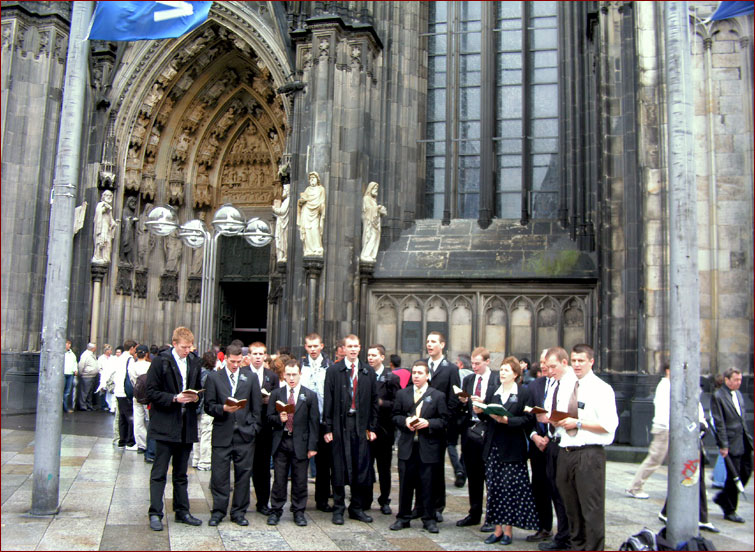 Heute vor dem Haupteingangsportal zum Kölner Dom, ca 12 Uhr, fotografiert. Der Regen hatte nachgelassen, aber die Sonne kam noch nicht hinter den Wolken hervor.