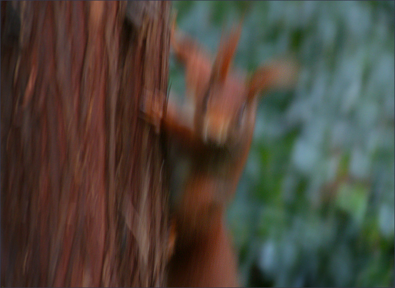 Ein Eichhörnchen heutemorgen am Baumstamm gesehen. Sieht trotz Unschärfe lustig aus