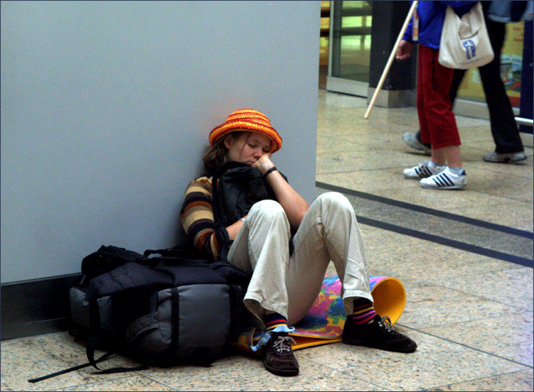 Nach all den vielen Erlebnissen und Eindrücken braucht diese Pilgerin einfach eine Ruhepause.