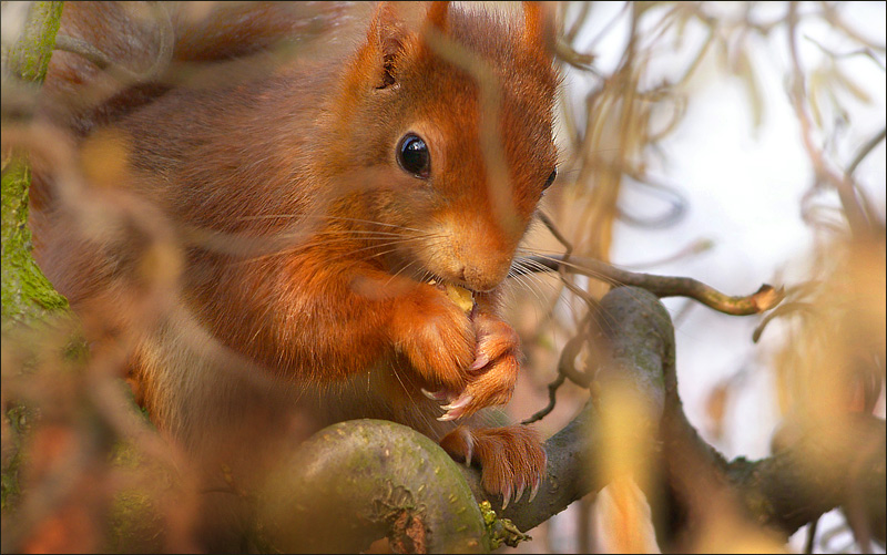 Fotozufallsglück: In einem Haselnussstrauch beim Verzehr einer Nuss gesehen und