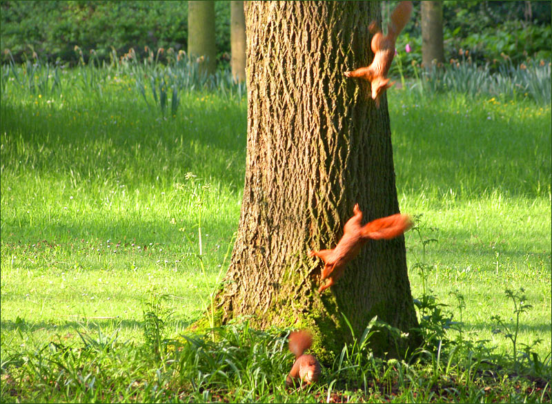 Wie wunderschön, gleich 3 Eichhörnchen. Das kommt ja schon dem tapferen Schneiderlein nahe.