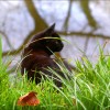 Eine zufriedene Katze, sie genießt ihre Umgebung