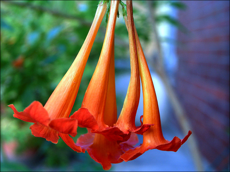 Von Meer habe ich erfahren, daß der Strauch eigentlich Stechapfel heisst. Jedenfalls sind die Blüten trompetenförmig und recht lang.