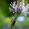 Da ist ja reges Treiben am Stengel. Sie wissen, dass Spitzwegerich eine Heilpflanze ist.