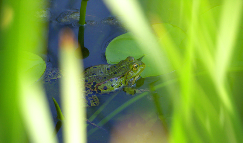 springt und den Frosch besucht, weil