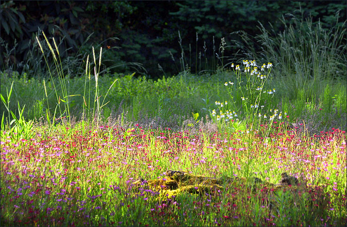 Die Morgensonne, wie schön sie die Wiese erstrahlen lässt.