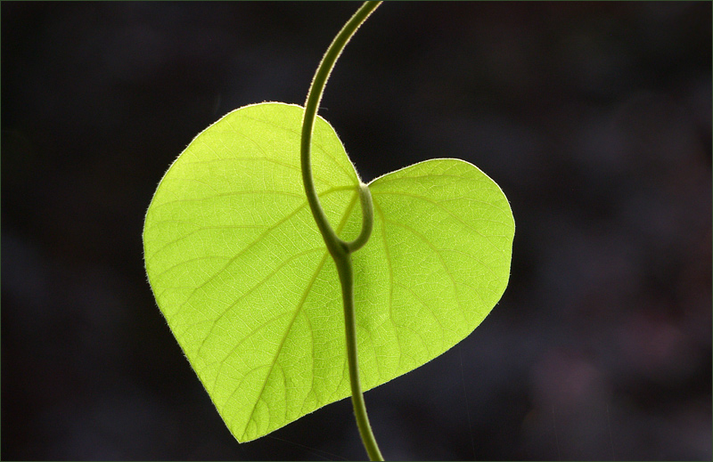 Das Blatt hat deine Liebe zu ihm gefühlt und erwidert es mit Leuchten.